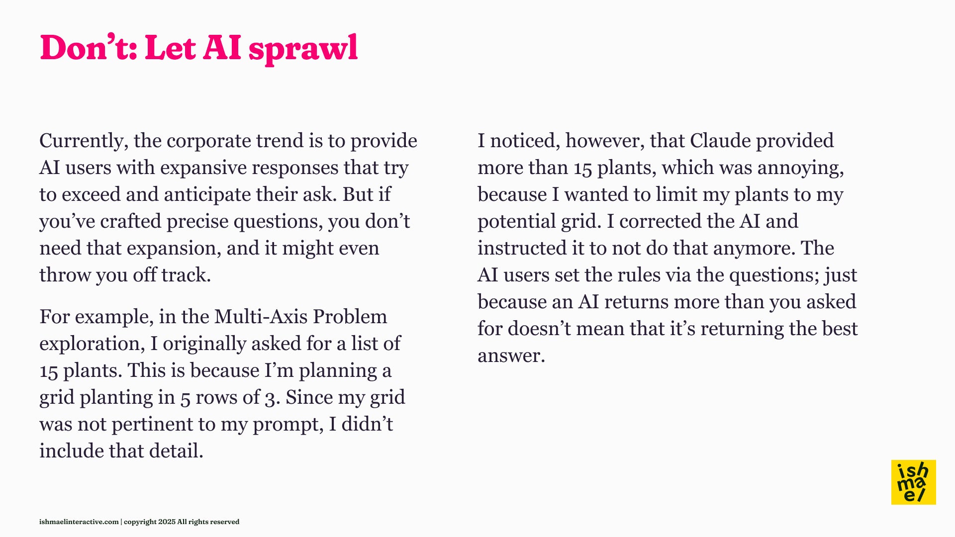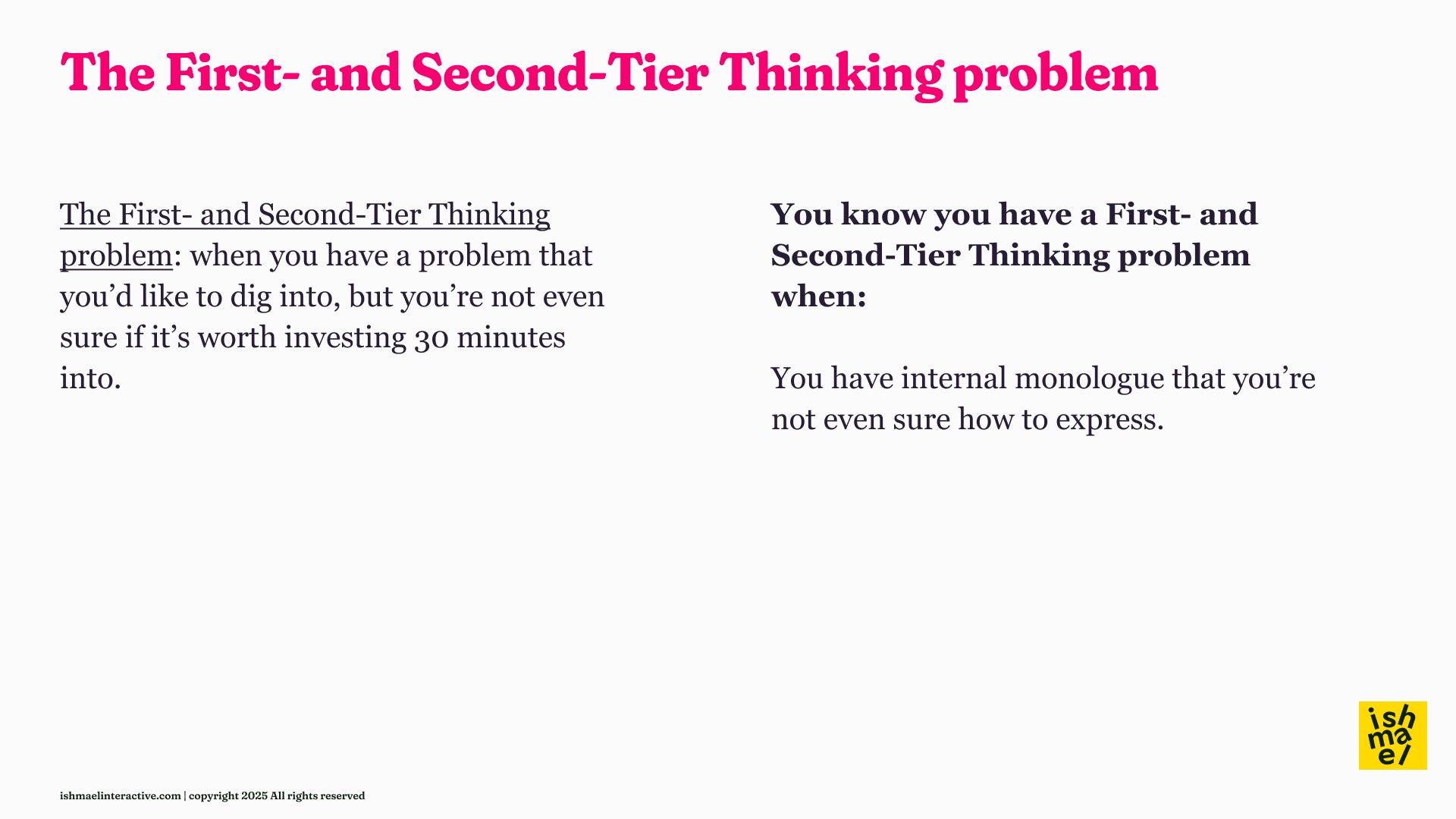 Benefit: Learn by doing with your actual work problems, not theoretical examples. Get expert feedback on your AI thinking, not just passive video consumption.